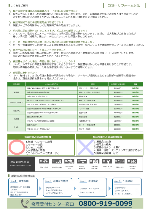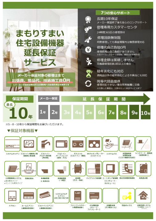 【4】キッチンからエアコンまで様々な住宅設備機器を長期保証(10年)
